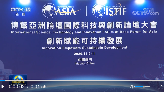 11月10日,博鰲亞洲論壇國(guó)際科技與創(chuàng)新論壇首屆大會(huì)開幕式在澳門舉行。中共中央政治局常委、國(guó)務(wù)院副總理韓正以視頻方式發(fā)表主旨演講。 新華社記者 丁林 攝