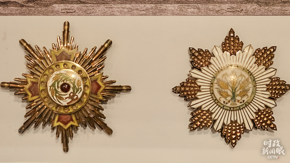 △這是民國政府頒授給張謇的寶光嘉禾勛章(左)和嘉禾勛章(右),以表彰他在實業(yè)、教育等方面的救國主張和實踐。(總臺央視記者彭漢明拍攝)