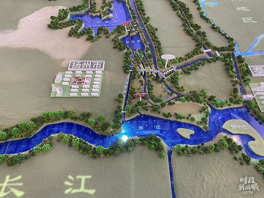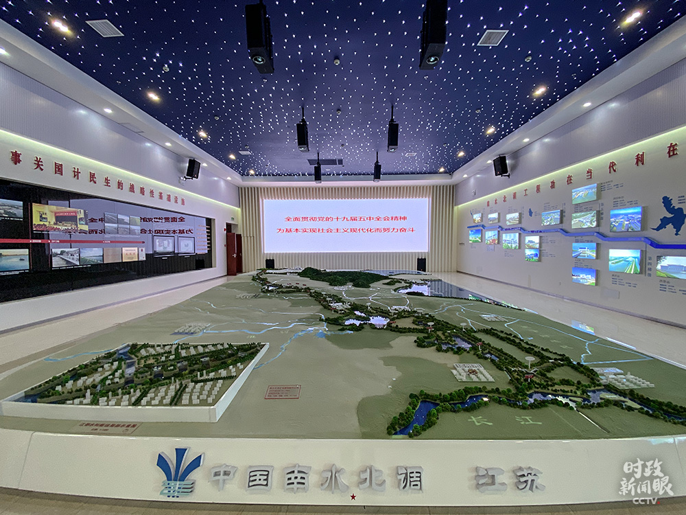 △江都水利樞紐展廳中的“南水北調東線工程”沙盤展示(總臺央視記者彭漢明拍攝)