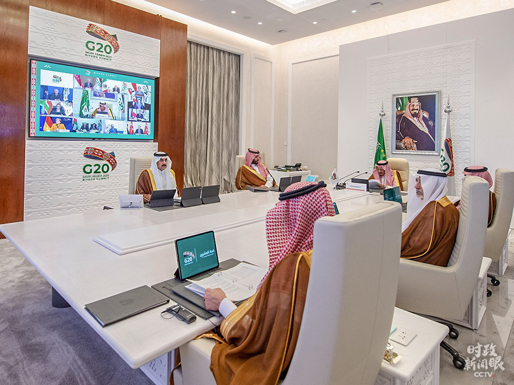 △沙特國王薩勒曼主持G20領(lǐng)導人第15次峰會第一階段會議。(來源于G20官方社交媒體)