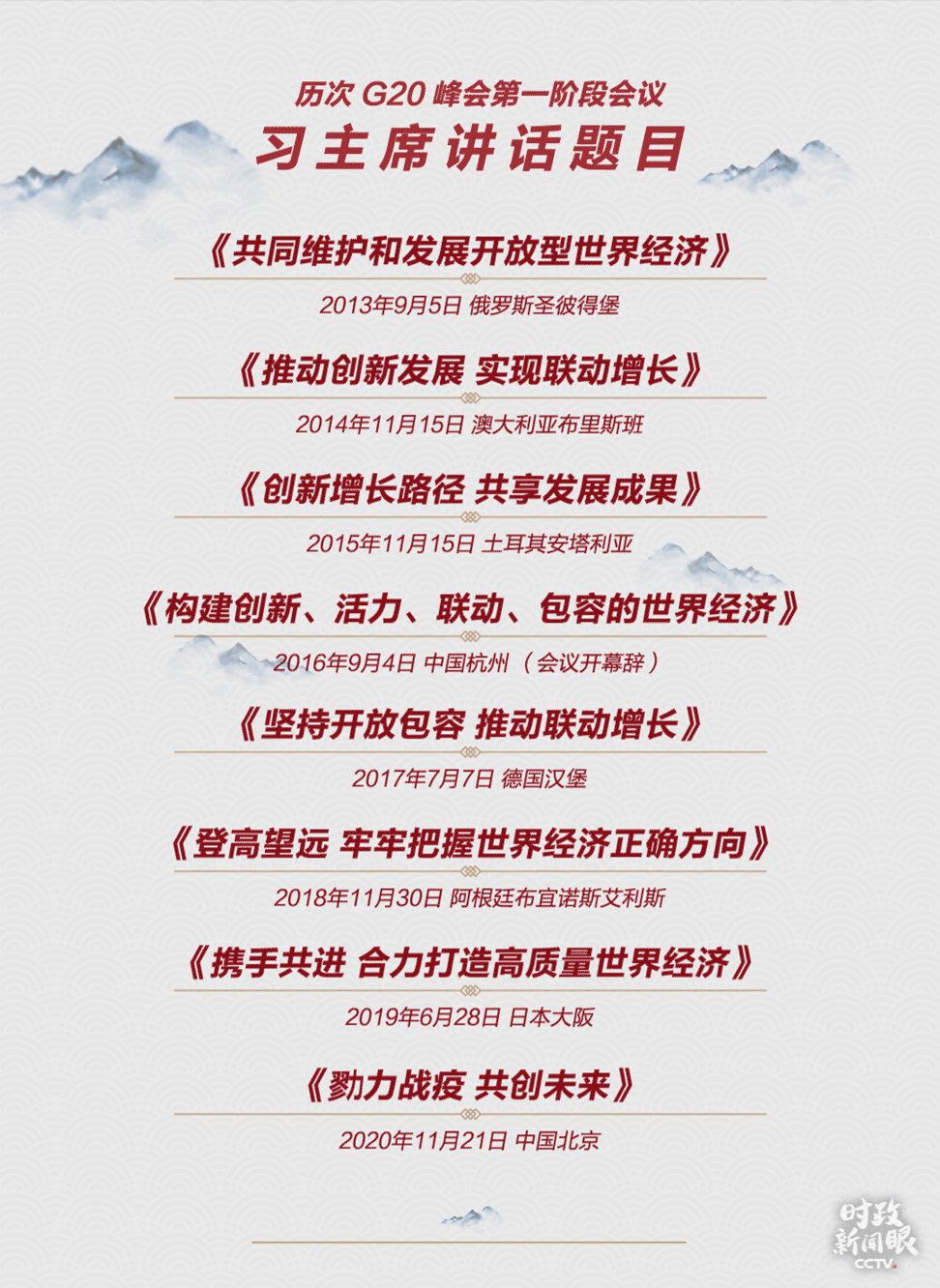 11月21日晚,連續(xù)第八年出席G20峰會的習主席在峰會第一階段會議上發(fā)表題為《勠力戰(zhàn)疫 共創(chuàng)未來》的講話,既提出抗疫情、穩(wěn)經(jīng)濟、保民生的路線圖,也呼吁G20在全球治理方面發(fā)揮更大引領(lǐng)作用。