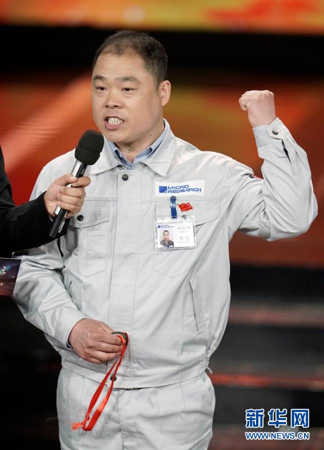 江蘇省無錫微研股份有限公司高級技師陳亮在“最美職工”發(fā)布儀式上(2019年4月21日攝)。新華社記者才揚攝