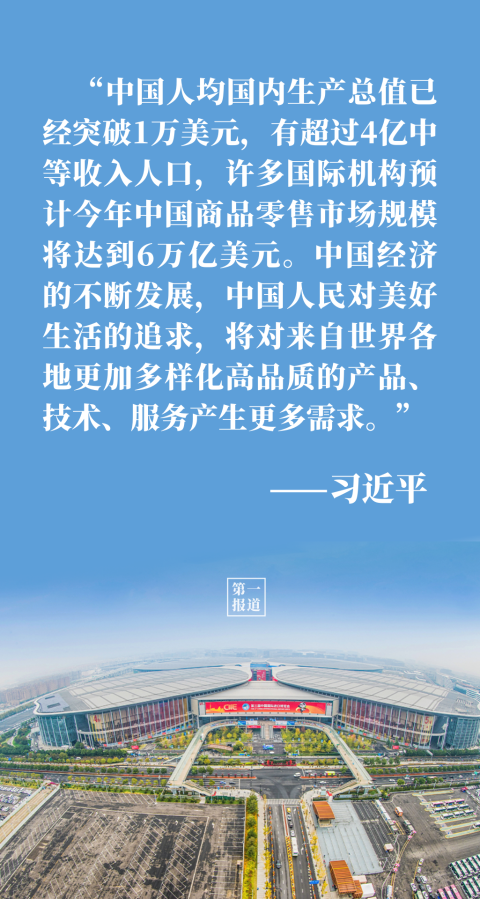 “中國的發(fā)展離不開世界,世界的繁榮也需要中國。”談到中國大市場蘊藏的大機遇,習主席用事實和數(shù)據說話: