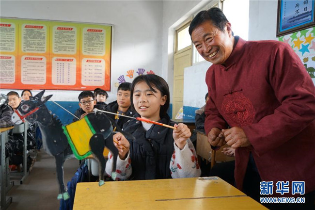 當日,在河北省沙河市,當地皮影戲藝人走進沙河市西油村小學,為學生們展演皮影藝術、傳授技藝。今年以來,河北省沙河市積極開展“非遺進校園”活動,組織沙河皮影戲、孔明鎖、孫氏太極拳等非遺項目進校園活動80多場。
