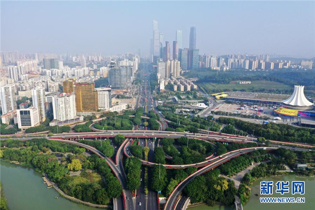 這是南寧國際會(huì)展中心及周邊建筑(11月26日攝,無人機(jī)照片)。新華社記者 陸波岸 攝