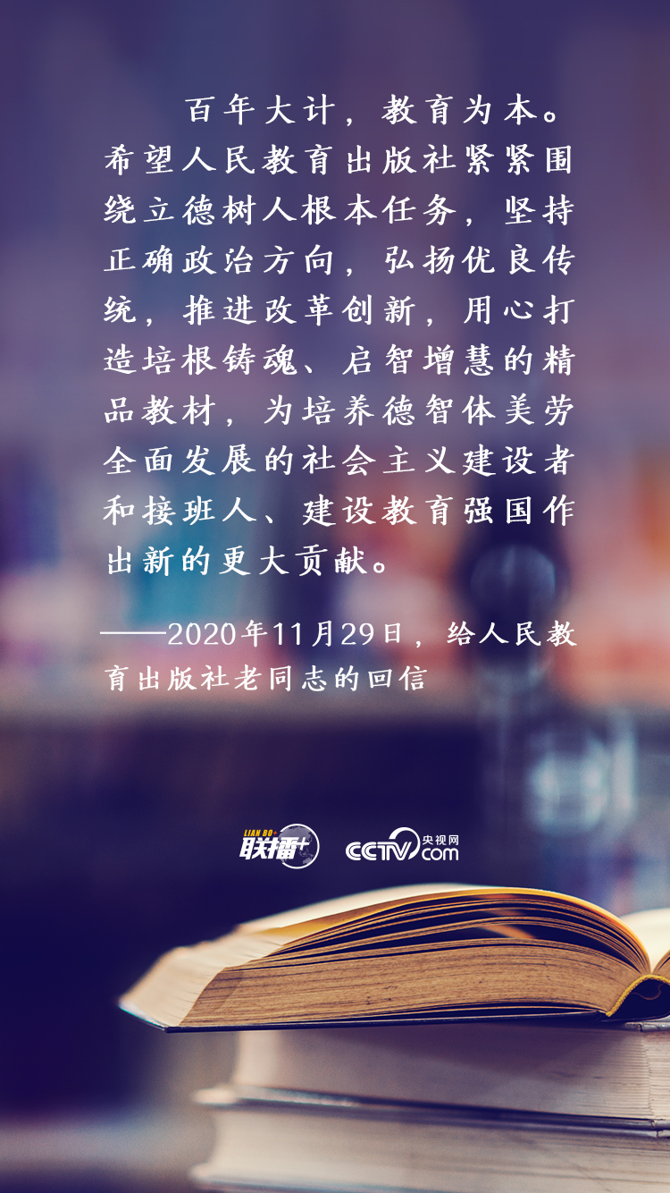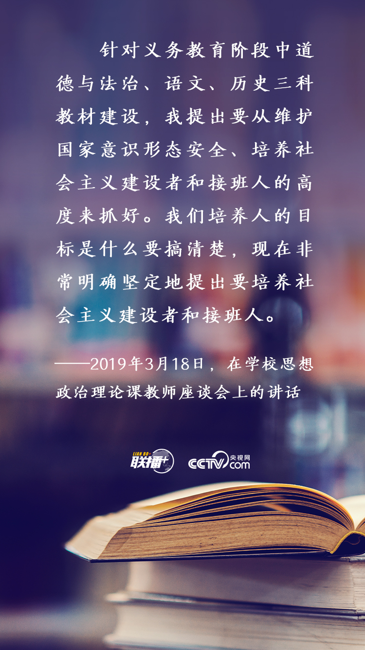 百年大計,教育為本。習近平總書記一貫高度重視培養(yǎng)社會主義建設者和接班人,不止一次對教材編研出版工作提出殷切期望。央視網《聯播+》為您梳理總書記有關精彩論述,與您一起學習領悟。