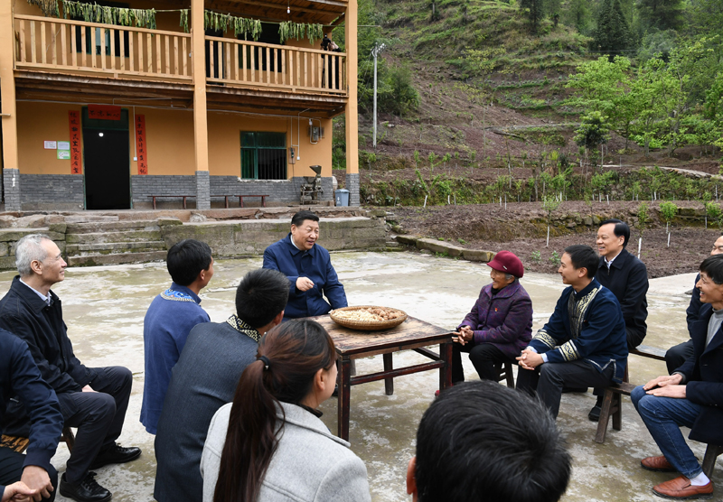 2019年4月15日,習(xí)近平在重慶市石柱土家族自治縣中益鄉(xiāng)華溪村同村民座談。