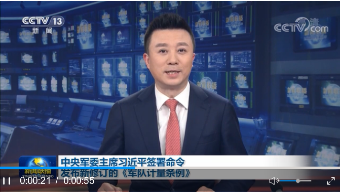 新華社北京12月17日電 中央軍委主席習(xí)近平日前簽署命令,發(fā)布新修訂的《軍隊計量條例》,自2021年1月1日起施行。