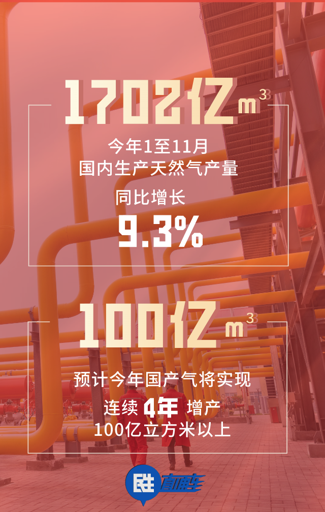 一是國內生產穩(wěn)定。今年1至11月,國內生產天然氣1702億立方米,比去年同期增長9.3%,預計今年國產氣將實現連續(xù)4年增產100億立方米以上,這為穩(wěn)定供氣奠定扎實基礎。
