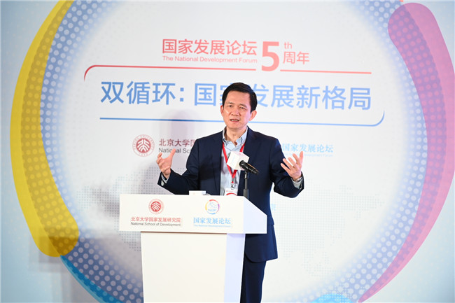 ▲圖為姚洋在北京大學國家發(fā)展研究院第五屆國家發(fā)展論壇發(fā)表演講。圖片來源:北大國發(fā)院。