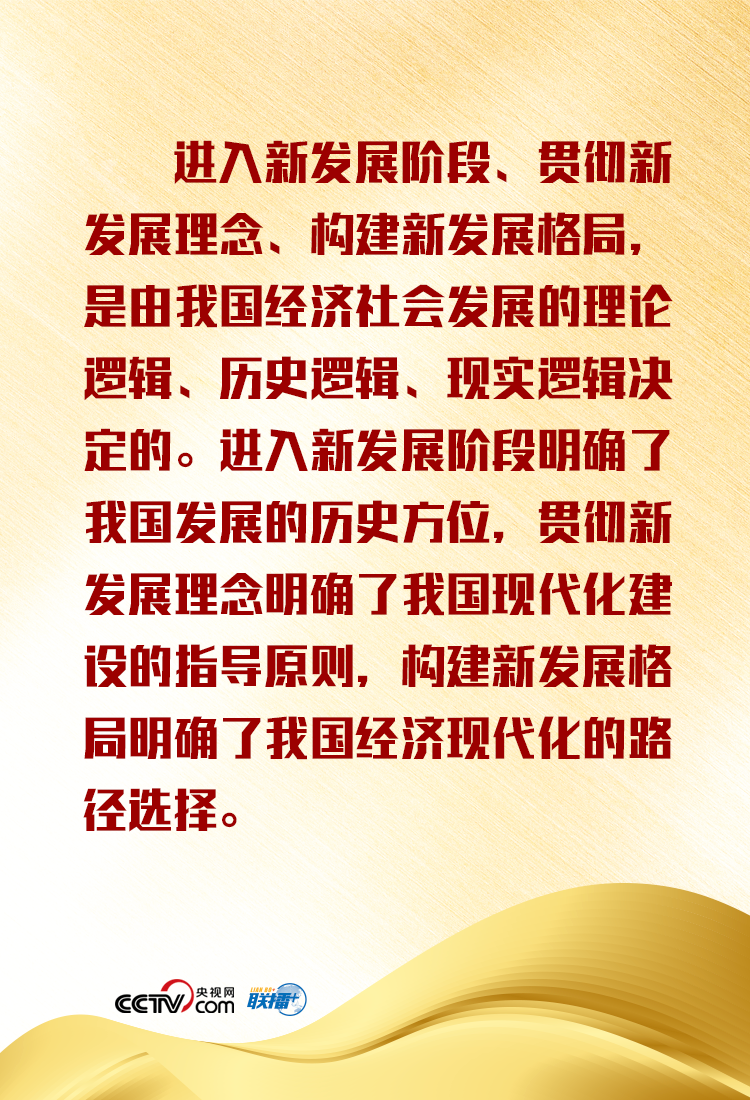 在講話中,習(xí)近平總書記從理論和實(shí)際、歷史和現(xiàn)實(shí)、國內(nèi)和國際相結(jié)合的高度,分析了進(jìn)入新發(fā)展階段的理論依據(jù)、歷史依據(jù)、現(xiàn)實(shí)依據(jù),闡述了深入貫徹新發(fā)展理念的新要求,闡明了加快構(gòu)建新發(fā)展格局的主攻方向。