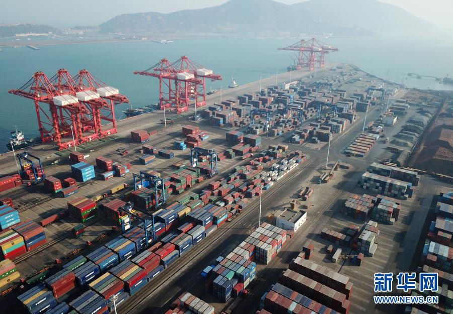 這是1月14日在江蘇連云港港拍攝的集裝箱碼頭(無人機(jī)照片)。新華社發(fā)(耿玉和 攝)