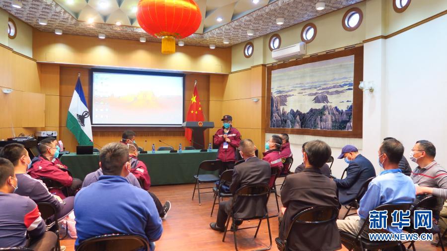 2020年10月3日,中國醫(yī)療專家組成員在萊索托馬塞盧舉辦疫情防控講座。應(yīng)萊索托政府邀請(qǐng),中國政府抗疫醫(yī)療專家組一行10人于9月27日至10月7日在萊索托開展抗擊新冠疫情援助工作。新華社發(fā)(中國駐萊索托大使館供圖)