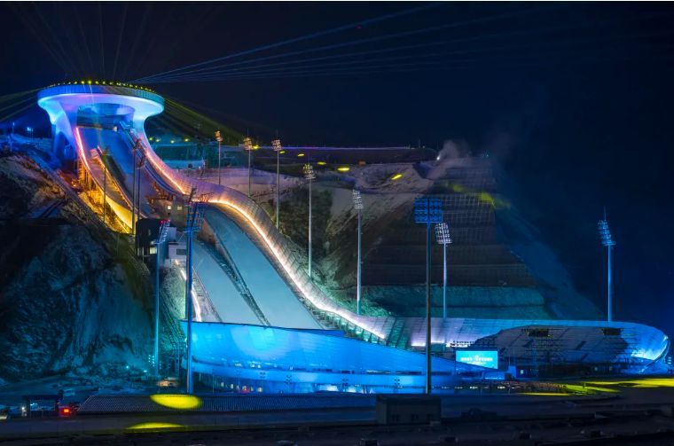↑位于河北省張家口市崇禮區(qū)的國(guó)家跳臺(tái)滑雪中心別名“雪如意”,是北京冬奧會(huì)的主要比賽場(chǎng)館之一。主體建筑靈感來自中國(guó)傳統(tǒng)飾物“如意”,實(shí)現(xiàn)了建筑設(shè)計(jì)和中國(guó)傳統(tǒng)文化的有機(jī)結(jié)合,也是2022年北京冬奧會(huì)張家口賽區(qū)工程量最大、技術(shù)難度最高的競(jìng)賽場(chǎng)館。這是“雪如意”夜間燈光點(diǎn)亮效果(無人機(jī)照片,2020年12月19日攝)。新華社發(fā)