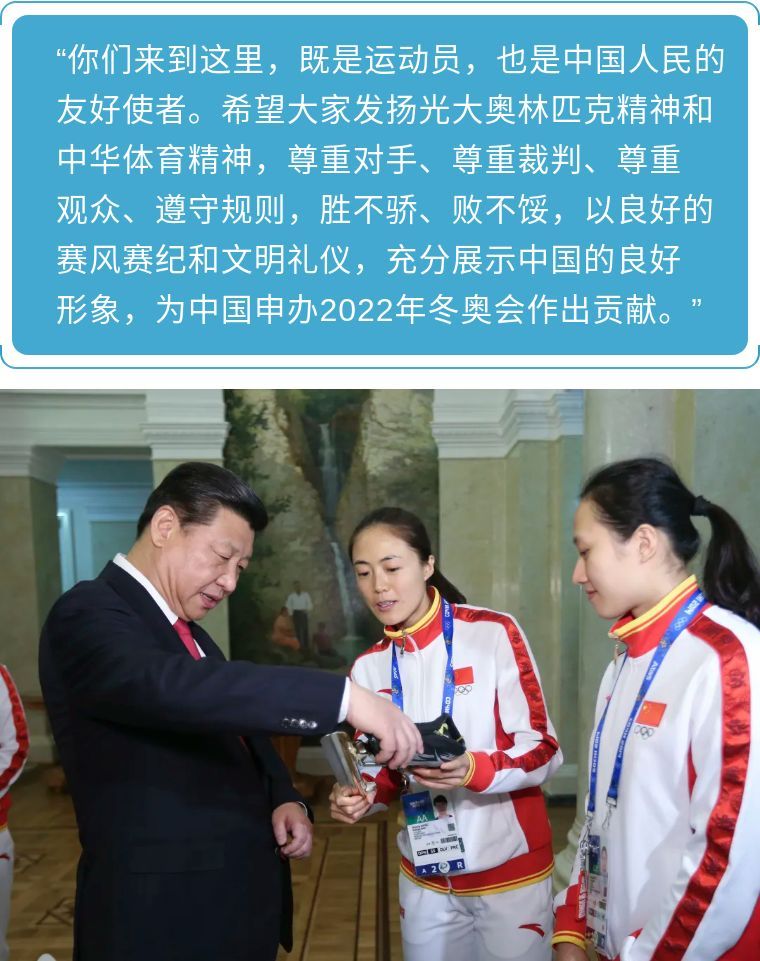 ↑2014年2月7日,中共中央總書記、國(guó)家主席、中央軍委主席習(xí)近平在俄羅斯索契親切看望參加第二十二屆冬季奧林匹克運(yùn)動(dòng)會(huì)的中國(guó)體育代表團(tuán)。這是運(yùn)動(dòng)員向習(xí)近平介紹冰雪運(yùn)動(dòng)器材。新華社記者 蘭紅光 攝