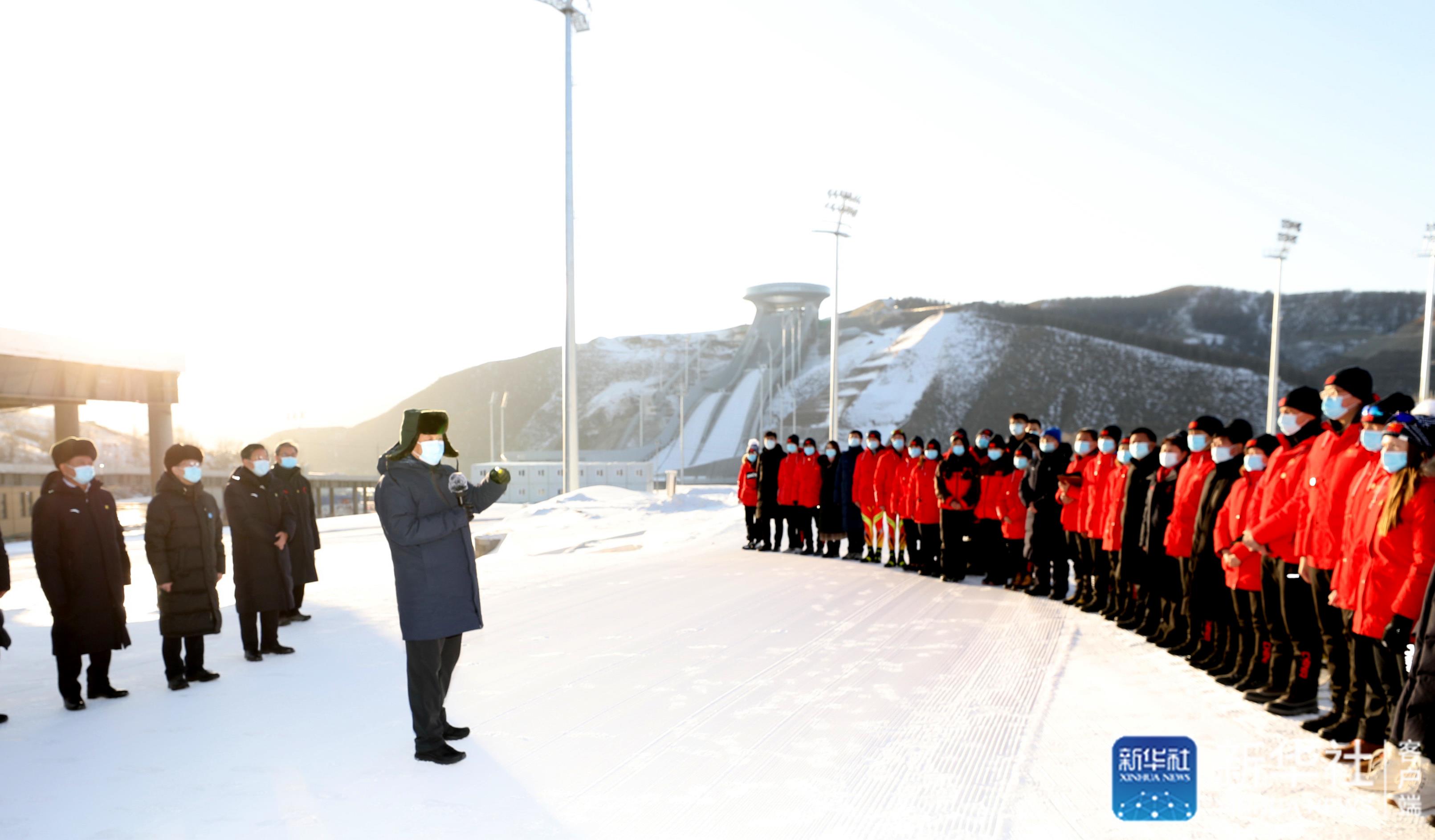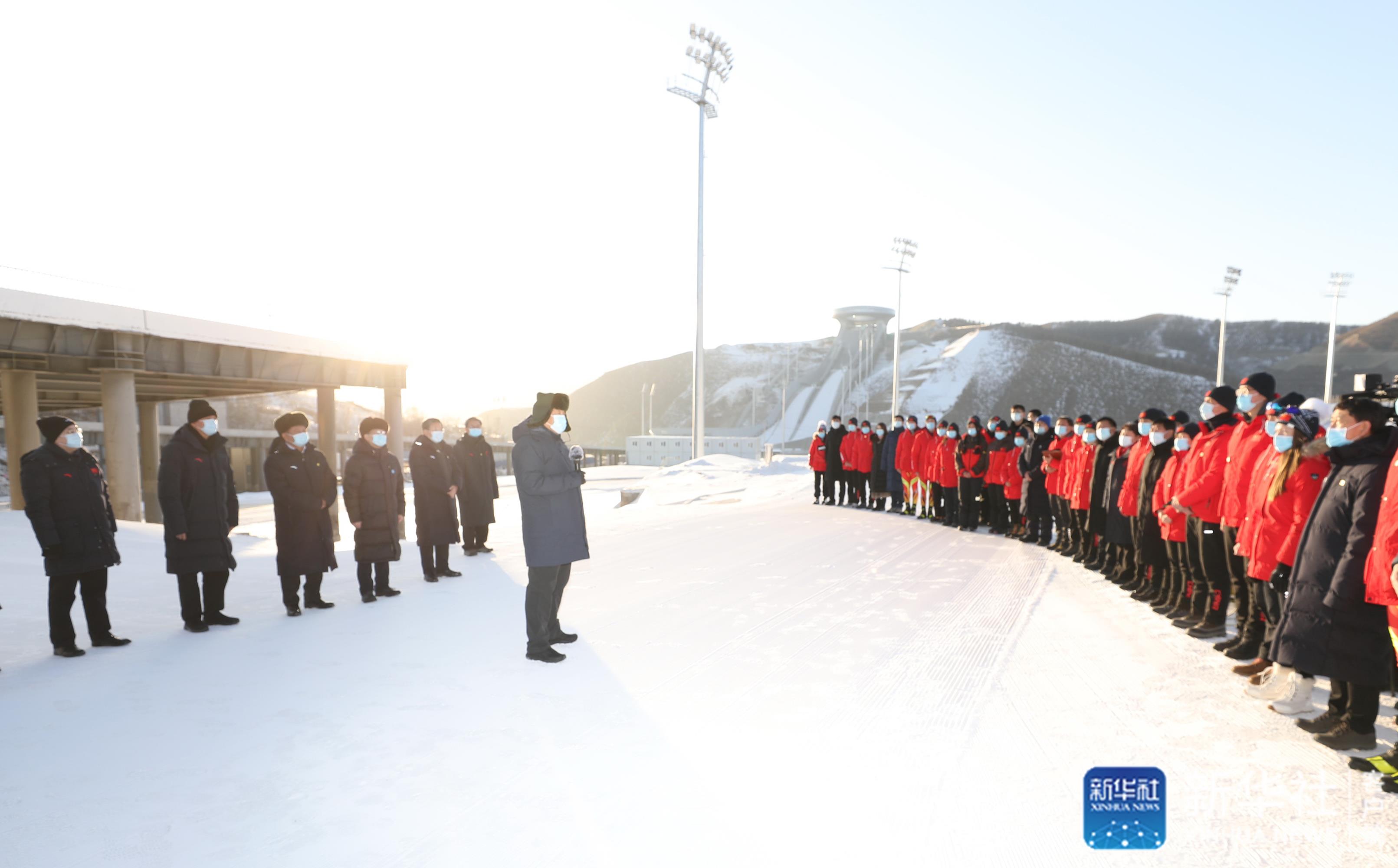 在國家冬季兩項(xiàng)中心看臺(tái),習(xí)近平觀看了冬季兩項(xiàng)越野滑雪和射擊運(yùn)動(dòng)員接力訓(xùn)練情況,并看望慰問國家冬季兩項(xiàng)、跳臺(tái)滑雪隊(duì)運(yùn)動(dòng)員、教練員和張家口賽區(qū)運(yùn)行保障團(tuán)隊(duì)、建設(shè)者代表。習(xí)近平親切地對大家說,我這次來考察北京冬奧會(huì)、冬殘奧會(huì)籌辦情況,也是在牛年春節(jié)前來看望大家。大家都在為辦好一屆成功的冬奧盛會(huì)而努力,運(yùn)動(dòng)員在刻苦訓(xùn)練,建設(shè)單位和建設(shè)者、保障團(tuán)隊(duì)兢兢業(yè)業(yè),成功打造了一批世界一流的精品工程,大家的奮斗精神、奉獻(xiàn)精神令人感奮。習(xí)近平強(qiáng)調(diào),北京冬奧會(huì)、冬殘奧會(huì)所有場館建設(shè)提前一年完成,我國很多冰雪項(xiàng)目在兩年多時(shí)間里實(shí)現(xiàn)從無到有,有的項(xiàng)目達(dá)到了世界先進(jìn)水平,充分體現(xiàn)了黨的領(lǐng)導(dǎo)和舉國體制、集中力量辦大事的制度優(yōu)勢。