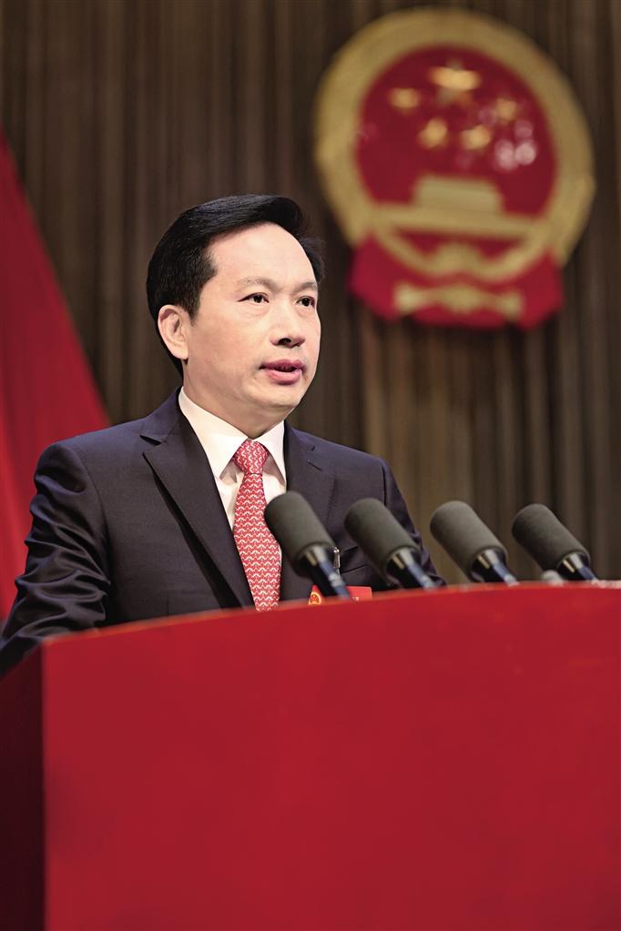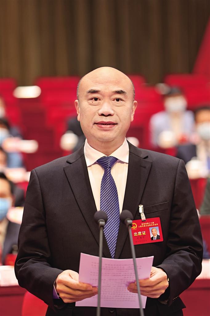 省長趙一德代表省政府向大會作政府工作報告。 記者 張辰攝