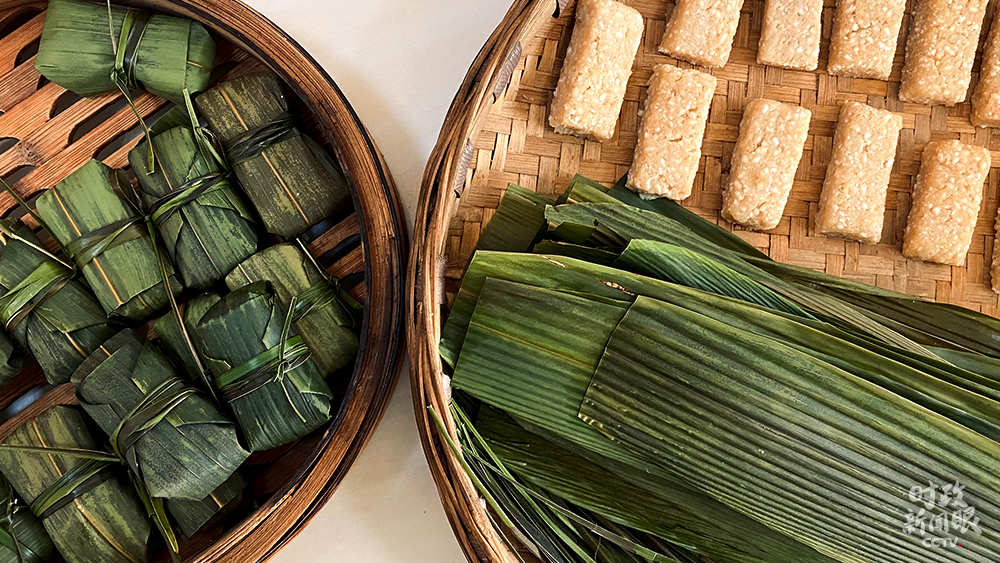 △趙玉學(xué)一家正在做黃粑。(總臺(tái)央視記者王哈男拍攝)
