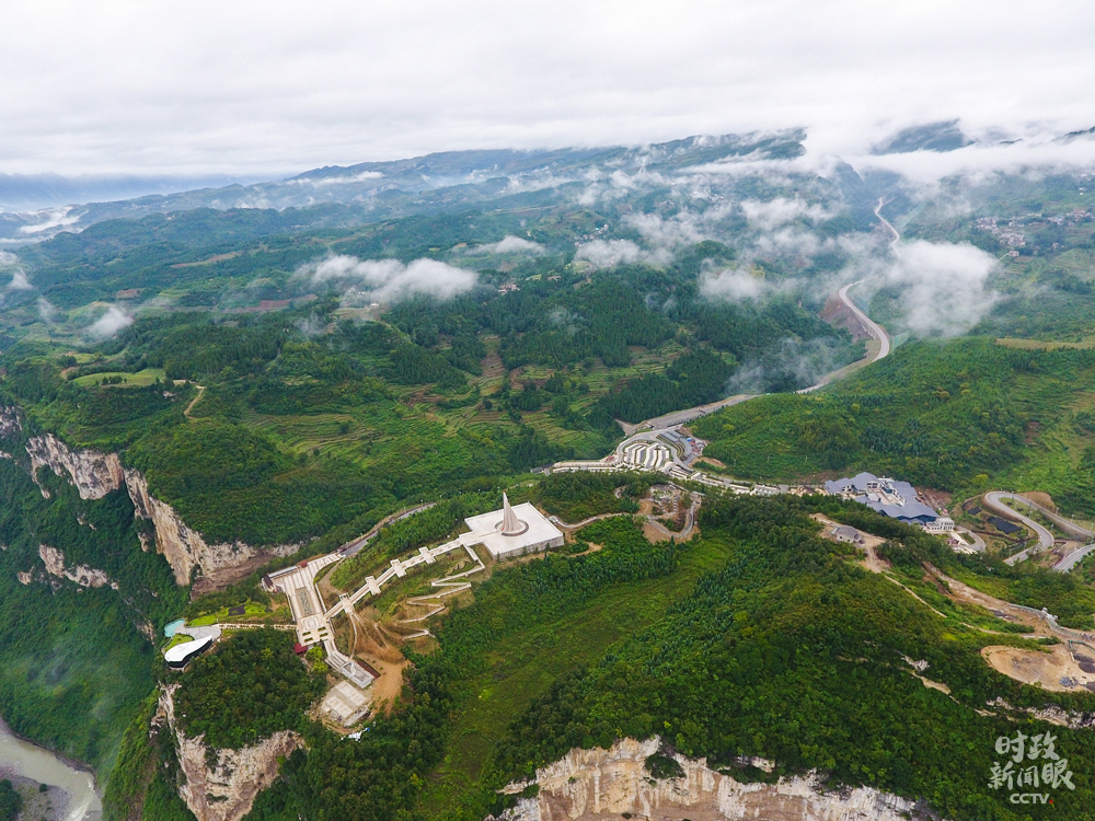 △俯瞰化屋村。“化屋”在彝族語里是“巖壁”的意思,村民早年外出必須從懸崖峭壁邊走,地勢(shì)危險(xiǎn)缺少防護(hù)。(總臺(tái)央視記者安楠拍攝)