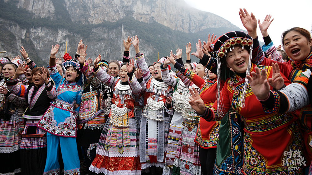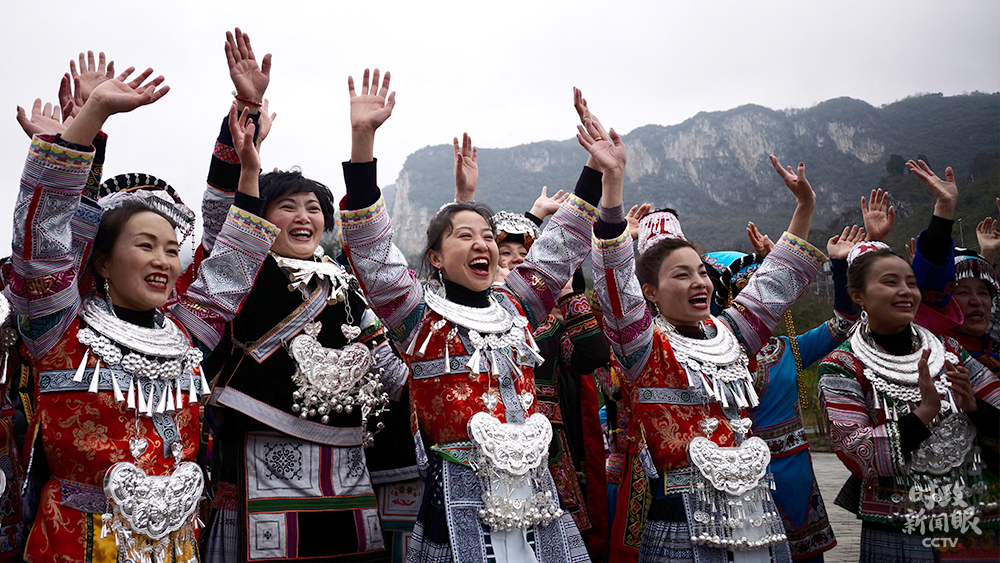 △廣場上熱烈歡迎總書記到訪的苗寨村民(總臺(tái)央視記者張宇、彭漢明、王哈男拍攝)
