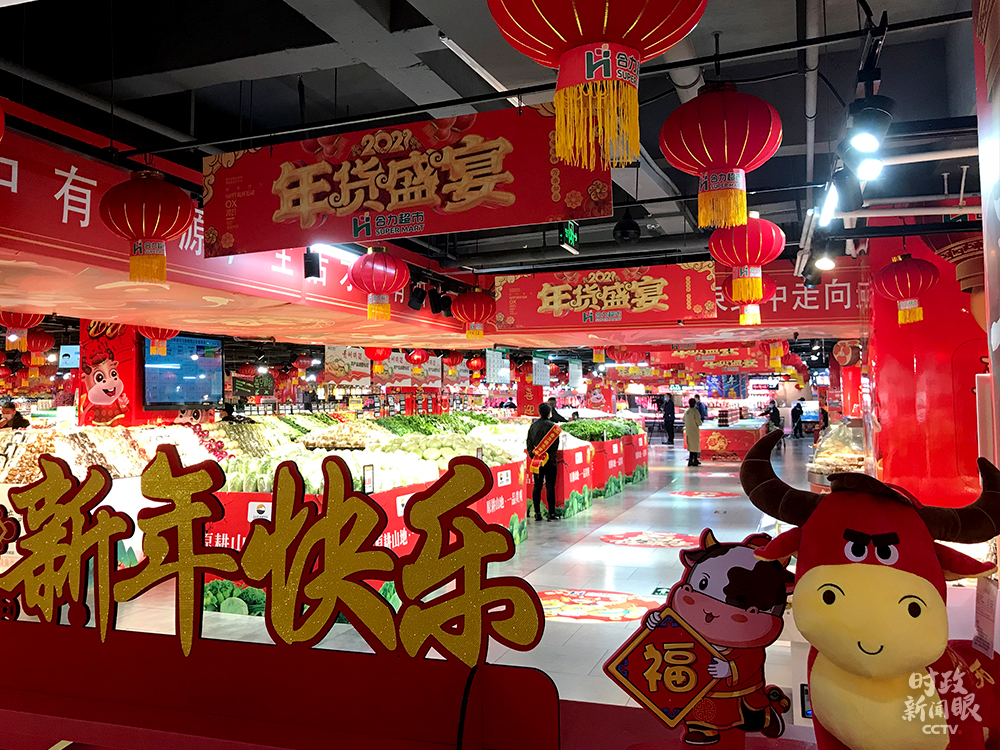 △超市內(nèi)“福氣”與“年味兒”十足(總臺(tái)央視記者章猛拍攝)