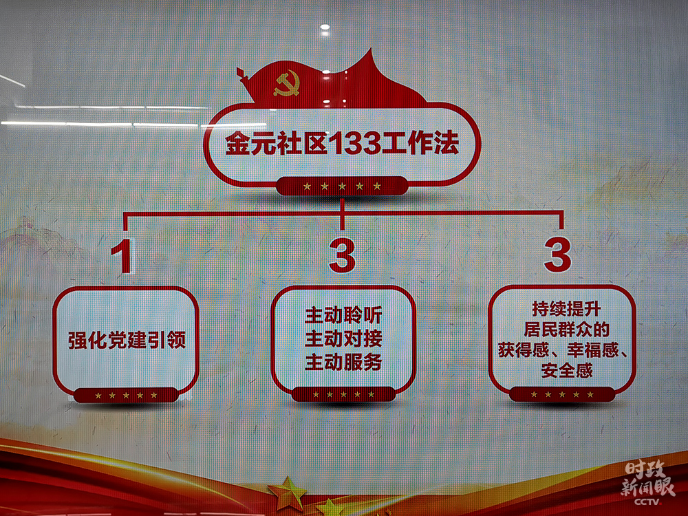 △金元社區(qū)的“133工作法”,“1”是強(qiáng)化黨建引領(lǐng),第一個(gè)“3”是社區(qū)工作要“主動(dòng)聆聽、主動(dòng)對(duì)接、主動(dòng)服務(wù)”。(總臺(tái)央視記者楊立峰拍攝)