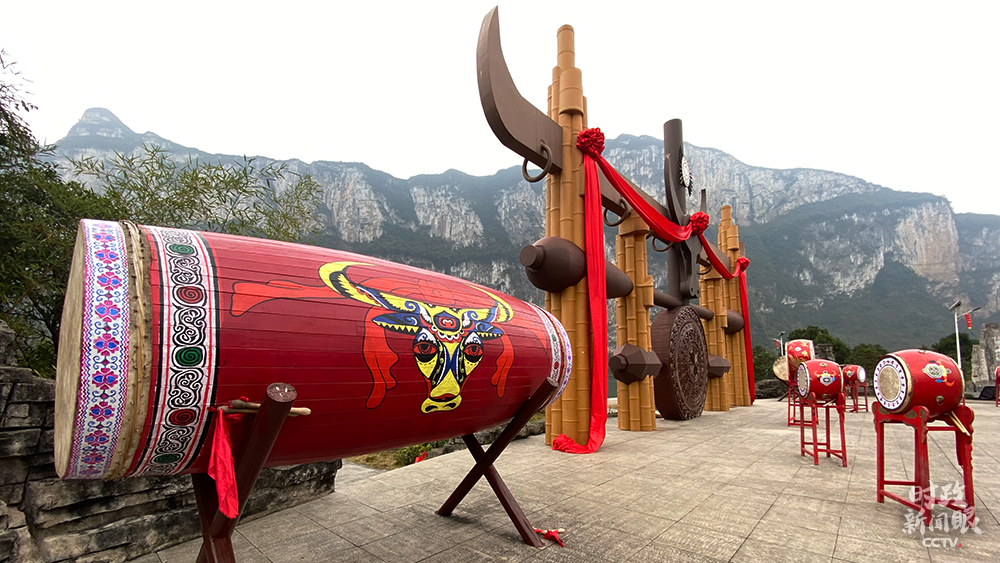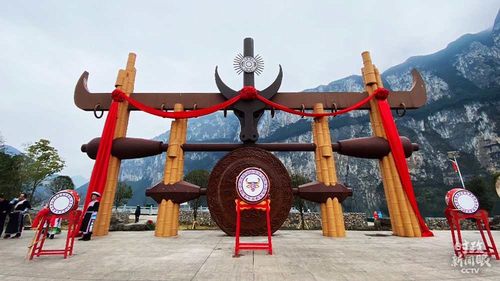 △化屋村文化廣場(chǎng),牛角是苗族圖騰之一。(總臺(tái)央視記者張宇、李輝拍攝)