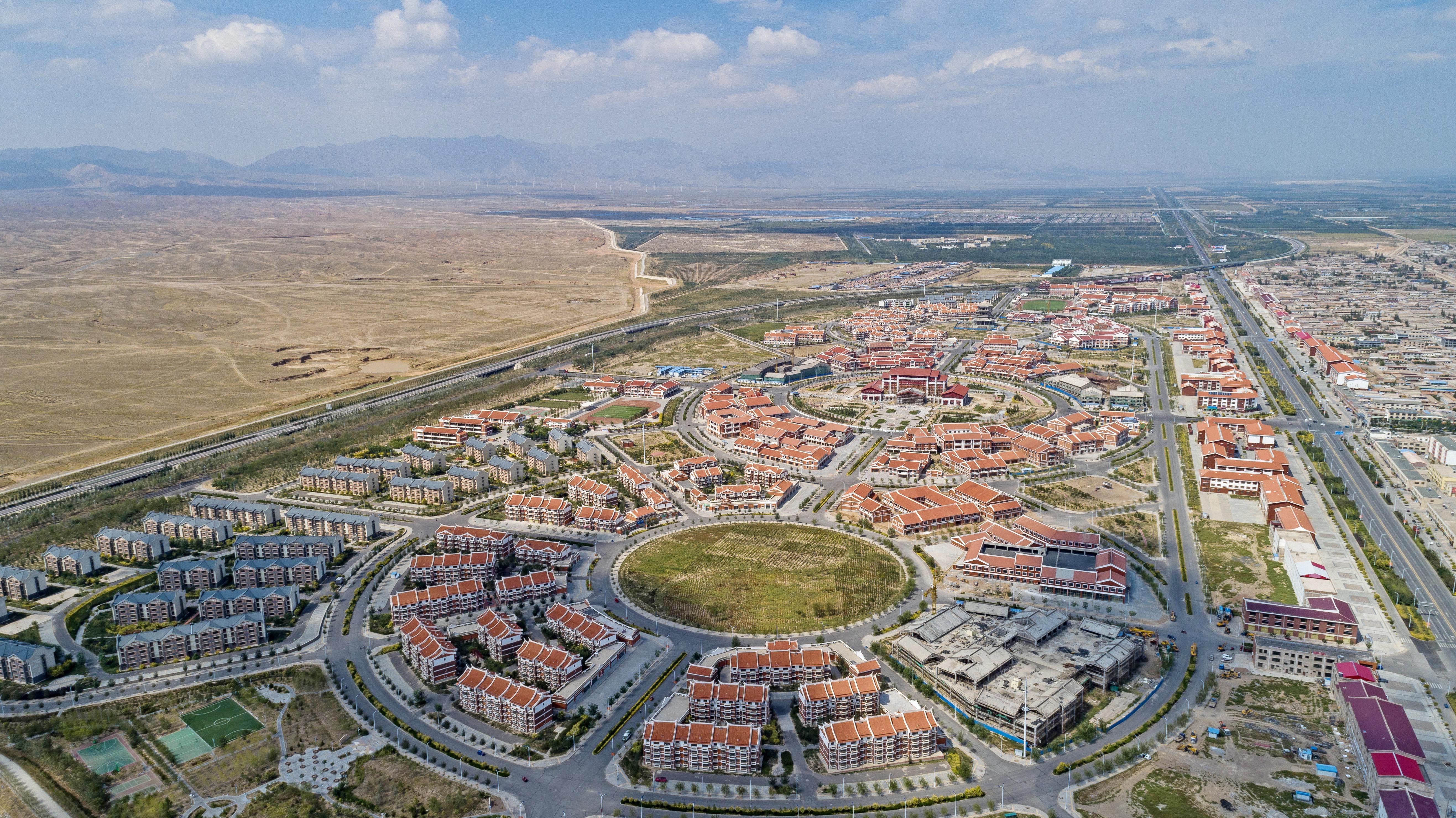 這是2019年9月3日拍攝的寧夏銀川市永寧縣閩寧鎮(zhèn)新鎮(zhèn)建設(shè)全景(無人機(jī)照片)。新華社記者 王鵬 攝