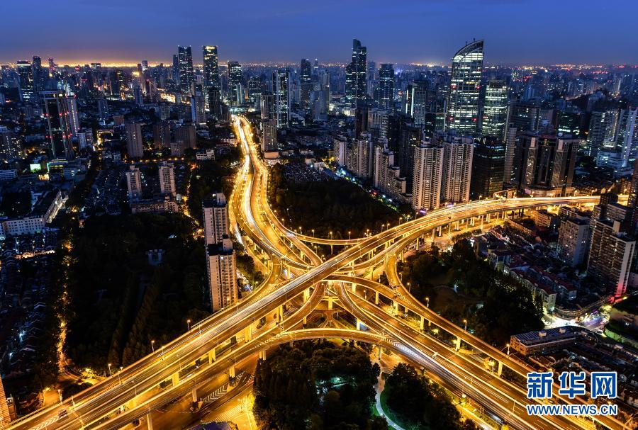 這是2018年11月2日拍攝的上海延安高架路與南北高架路交匯處的立交橋。新華社記者 李鑫 攝