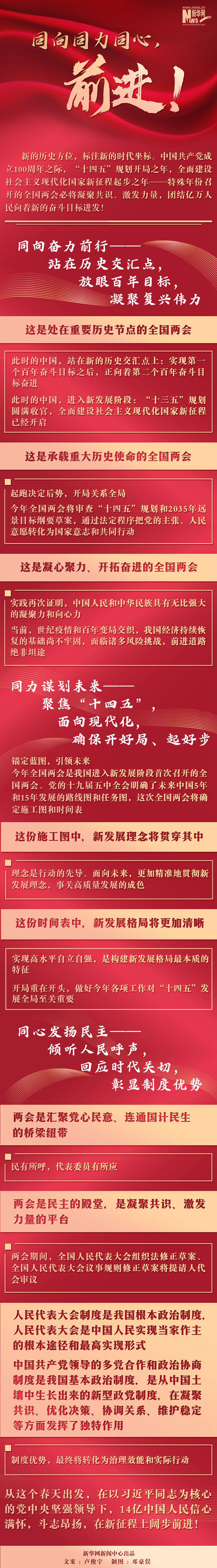 中國共產(chǎn)黨成立100周年之際,“十四五”規(guī)劃開局之年,全面建設(shè)社會主義現(xiàn)代化國家新征程起步之年——特殊年份召開的全國兩會必將凝聚共識、激發(fā)力量,團結(jié)億萬人民向著新的奮斗目標進發(fā)。