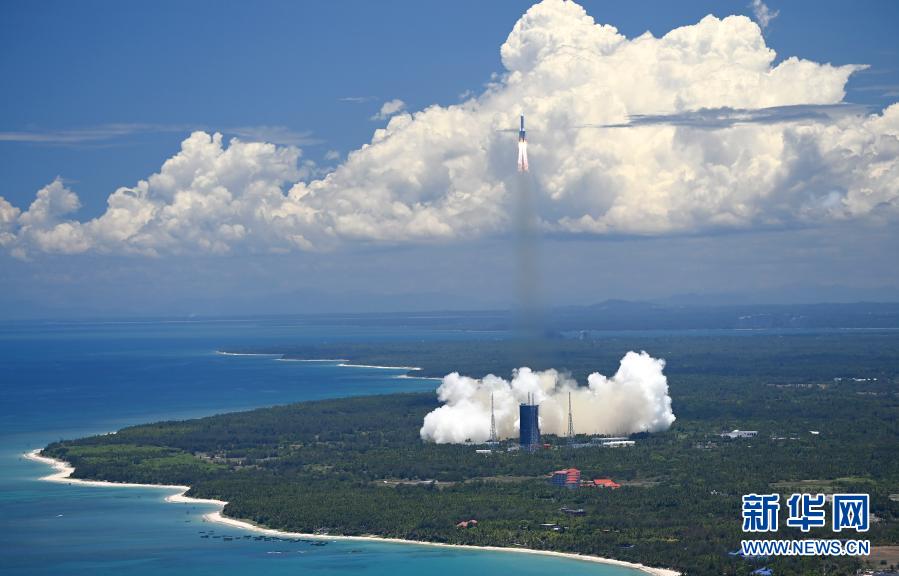 2020年7月23日12時41分,我國在海南島東北海岸中國文昌航天發(fā)射場,用長征五號遙四運載火箭將我國首次火星探測任務(wù)“天問一號”探測器發(fā)射升空。新華社記者 郭程 攝