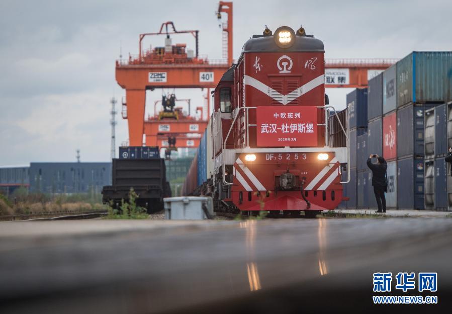 開往德國杜伊斯堡的中歐(武漢)班列從中鐵聯(lián)集武漢中心站駛出(2020年3月28日攝)。這是自疫情防控以來,從武漢開出的首趟中歐班列,標(biāo)志著中歐班列(武漢)恢復(fù)常態(tài)化運營。新華社記者 肖藝九 攝