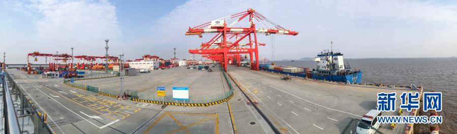 上海洋山港四期自動化碼頭(全景照片,2020年5月28日攝)。新華社記者 張玉薇 攝