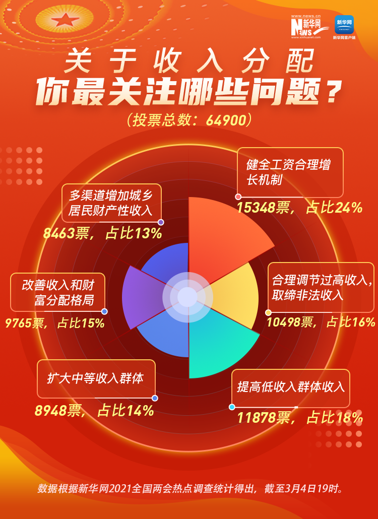 民之所望,政之所向。全國政協(xié)十三屆四次會(huì)議3月4日在北京開幕,2021年全國兩會(huì)正式開啟。今年你最關(guān)心什么事?在新華網(wǎng)前期推出的2021全國兩會(huì)熱點(diǎn)調(diào)查中,收入分配、鄉(xiāng)村振興、“十四五”規(guī)劃、疫情防控、就業(yè)創(chuàng)業(yè)、養(yǎng)老保障等成為網(wǎng)民關(guān)注的熱點(diǎn)話題。