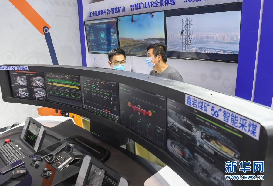 在武漢中國光谷科技會(huì)展中心舉行的2020中國5G+工業(yè)互聯(lián)網(wǎng)大會(huì)上,參觀者了解一套5G智能采煤系統(tǒng)(2020年11月19日攝)。新華社記者 程敏 攝