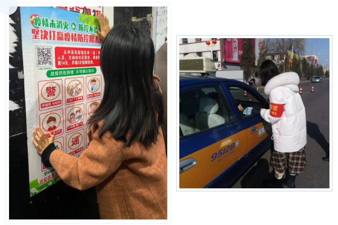 協(xié)助社區(qū)工作人員開(kāi)展返鄉(xiāng)人員信息登記、查看健康碼、測(cè)量體溫,為進(jìn)出人員分發(fā)口罩、排查登記;深入醫(yī)院等公共場(chǎng)所,耐心宣講防疫知識(shí),引導(dǎo)居民做好自我防護(hù);將防疫小知識(shí)制作成手冊(cè),融入文字、圖片等多種元素,發(fā)放給當(dāng)?shù)鼐用?,廣泛宣傳防疫知識(shí)……同學(xué)們的身影忙碌于15個(gè)省份44個(gè)地市。