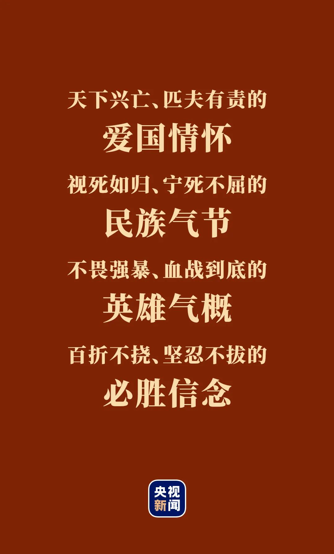 鑒往事,知來者。繼承和弘揚(yáng)偉大抗戰(zhàn)精神,以越是艱險(xiǎn)越向前的大無畏氣概,奮勇搏擊、迎難而上、勇于斗爭,我們必將在戰(zhàn)勝各種風(fēng)險(xiǎn)挑戰(zhàn)中書寫中華民族偉大復(fù)興的新篇章。