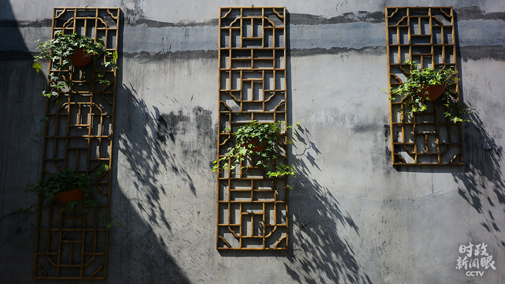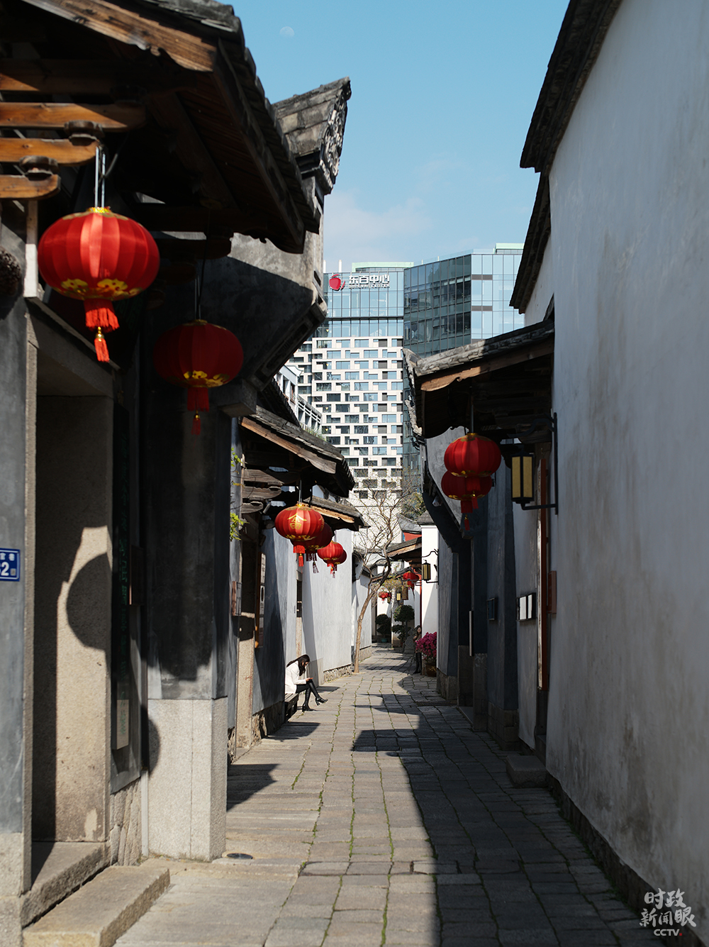 △走進(jìn)郎官巷,可以看到街區(qū)外的高樓,新舊建筑風(fēng)格交相輝映。(總臺(tái)央視記者彭漢明拍攝)