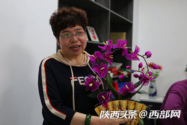 董智玲說:“你看我這盆蝴蝶蘭絲網(wǎng)花是不是很逼真,絲網(wǎng)花質(zhì)感強,猶如鮮花一般,放在家里欣賞及裝飾效果都很好,它不易褪色,歷久如新,清潔起來也相當(dāng)方便。”