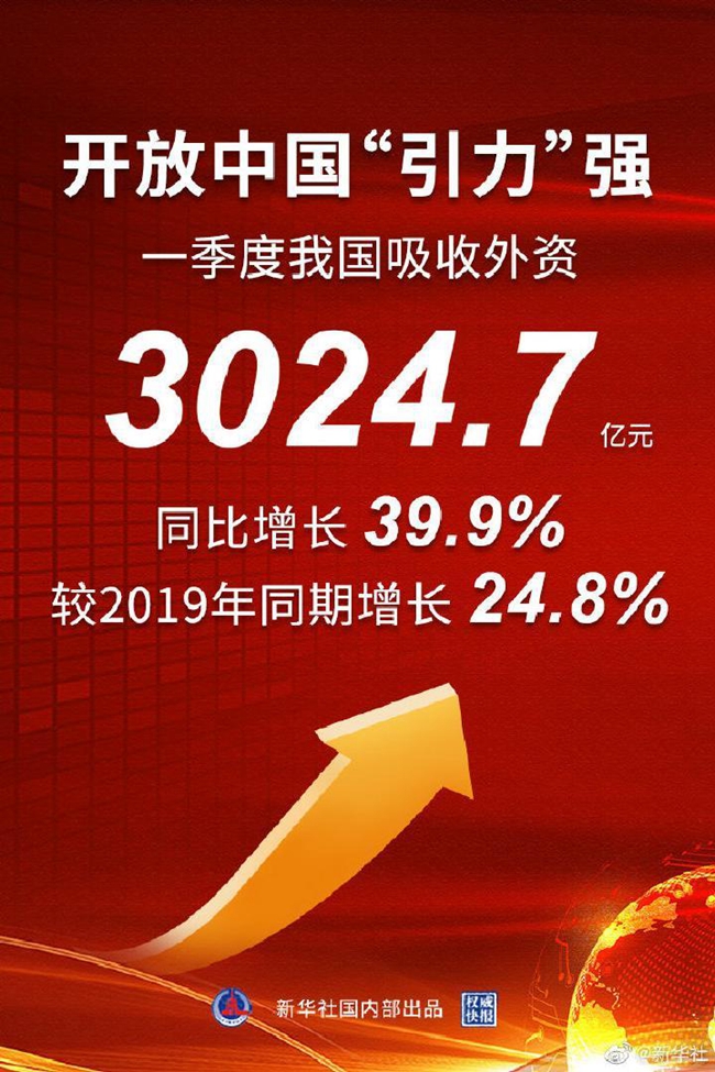 開局季,我國吸收外資迎來亮眼成績(jī)單:一季度新設(shè)外資企業(yè)數(shù)和實(shí)際使用外資金額同比增速分別接近50%和40%,漲幅明顯。漲勢(shì)背后原因何在?勢(shì)頭能否持續(xù)?