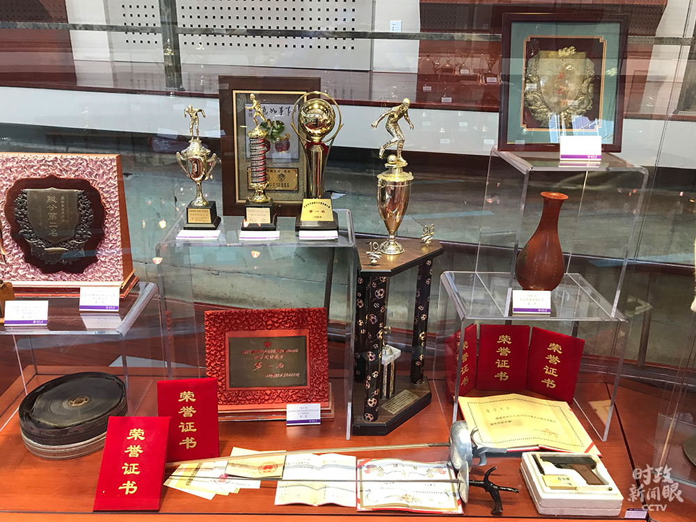△陳列在體育榮譽室的獎杯、證書(總臺央視記者許達(dá)拍攝)