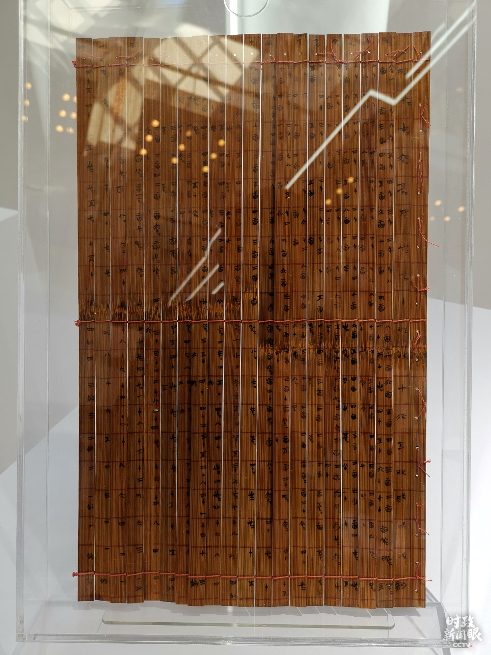 △清華大學(xué)藏戰(zhàn)國竹簡《算表》,在2017年經(jīng)吉尼斯世界紀(jì)錄獨立核實認(rèn)證,是目前發(fā)現(xiàn)的人類最早的十進(jìn)制計算工具。(總臺央視記者魏建拍攝)