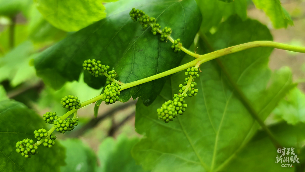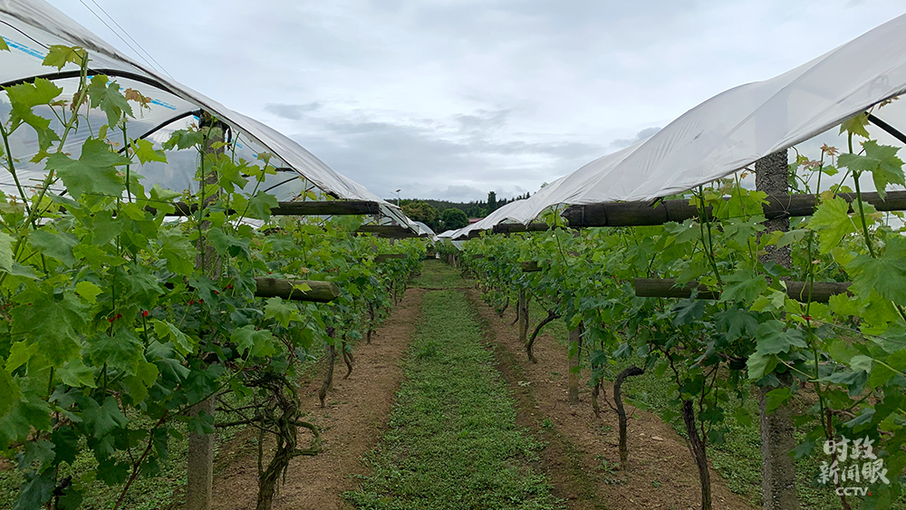 △白色塑料膜的棚架下,是村里種植的多品種葡萄。(總臺央視記者馬超、張曉鵬、趙化拍攝)