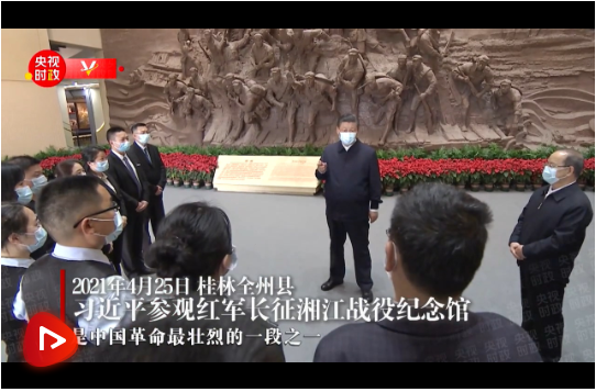 4月25日上午,習(xí)近平首先來到桂林市全州縣才灣鎮(zhèn),考察紅軍長征湘江戰(zhàn)役紀(jì)念園。