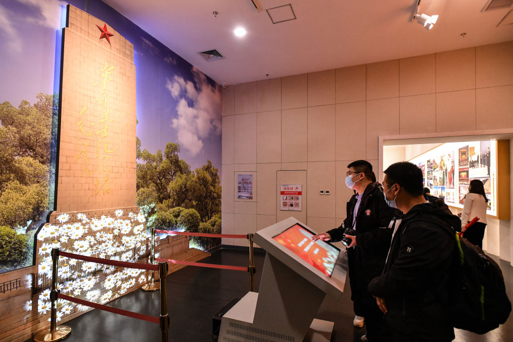↑2021年4月2日,參觀者在山東濟南戰(zhàn)役紀念館內(nèi)學習黨史、緬懷先烈。