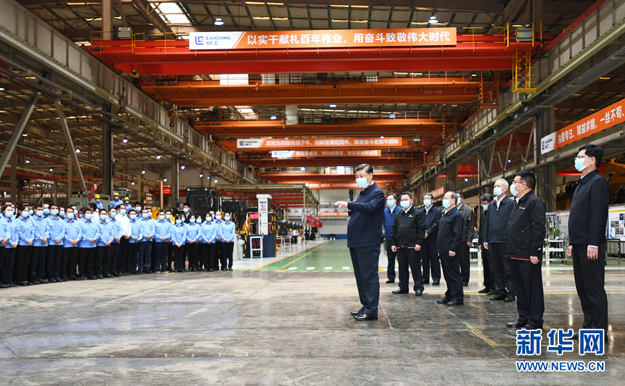 當(dāng)天下午,習(xí)近平來(lái)到柳州市考察調(diào)研。在廣西柳工集團(tuán)有限公司,習(xí)近平先后走進(jìn)公司展廳、研發(fā)實(shí)驗(yàn)中心、挖掘機(jī)裝配廠(chǎng)等,聽(tīng)取企業(yè)發(fā)展情況介紹,察看主要產(chǎn)品展示,同企業(yè)職工和技術(shù)研發(fā)人員親切交談。習(xí)近平強(qiáng)調(diào),制造業(yè)高質(zhì)量發(fā)展是我國(guó)經(jīng)濟(jì)高質(zhì)量發(fā)展的重中之重,建設(shè)社會(huì)主義現(xiàn)代化強(qiáng)國(guó)、發(fā)展壯大實(shí)體經(jīng)濟(jì),都離不開(kāi)制造業(yè),要在推動(dòng)產(chǎn)業(yè)優(yōu)化升級(jí)上繼續(xù)下功夫。只有創(chuàng)新才能自強(qiáng)、才能爭(zhēng)先,要堅(jiān)定不移走自主創(chuàng)新道路,把創(chuàng)新發(fā)展主動(dòng)權(quán)牢牢掌握在自己手中。要堅(jiān)持黨對(duì)國(guó)有企業(yè)的全面領(lǐng)導(dǎo),堅(jiān)持加強(qiáng)黨的領(lǐng)導(dǎo)和完善公司治理相統(tǒng)一,在深化企業(yè)改革中搞好黨的建設(shè),充分發(fā)揮黨組織在企業(yè)改革發(fā)展中的領(lǐng)導(dǎo)核心作用。