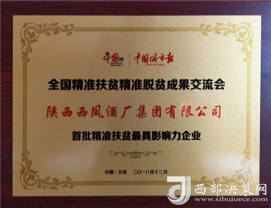西鳳集團(tuán)公司榮獲全國(guó)“首批精準(zhǔn)扶貧最具影響力企業(yè)”榮譽(yù)稱(chēng)號(hào)