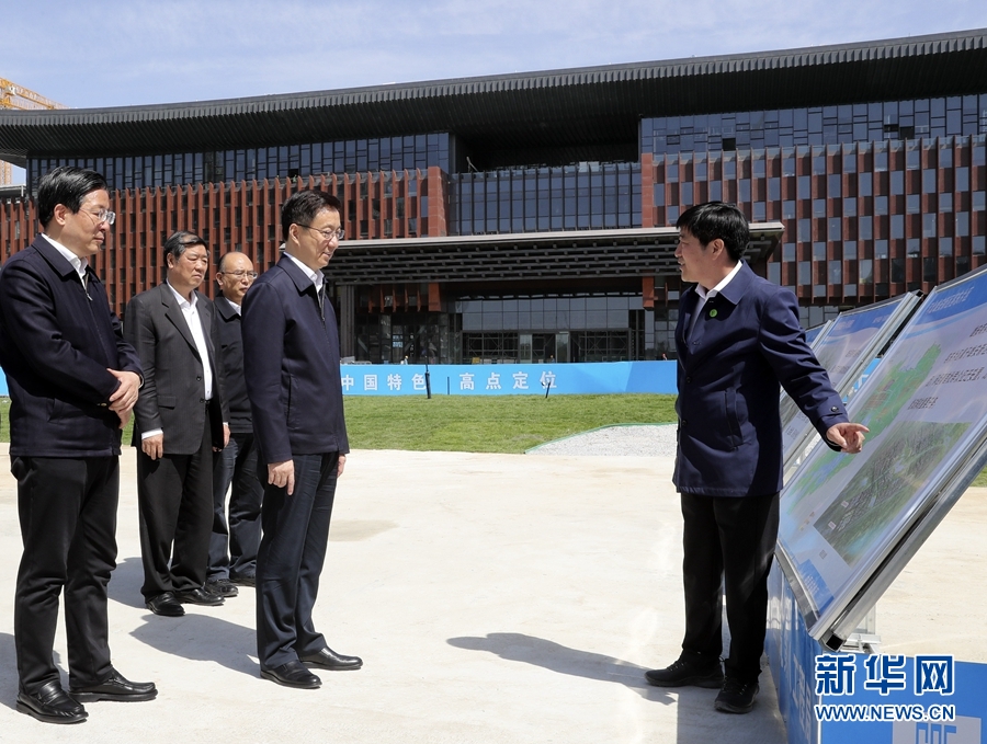 4月28日,中共中央政治局常委、國務院副總理韓正到河北雄安新區(qū)調(diào)研,主持召開京津冀協(xié)同發(fā)展領導小組會議并講話。這是韓正在容東片區(qū)雄安商務服務中心項目現(xiàn)場考察。新華社記者 丁林 攝