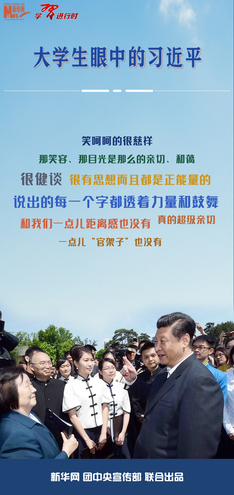 【學(xué)習(xí)進(jìn)行時(shí)】習(xí)近平對青年特別是大學(xué)生的重視關(guān)懷始終如一,多次與青年大學(xué)生交流交心交友。凡是與習(xí)近平有接觸的大學(xué)生,談起和他交往的一點(diǎn)一滴都記憶猶新,都認(rèn)為習(xí)近平的一言一行一直深深影響著他們、激勵(lì)著他們。新華社《學(xué)習(xí)進(jìn)行時(shí)》為您整理了不同時(shí)期多位大學(xué)生對習(xí)近平的深刻印象,與您共同感受這份親切與溫暖。