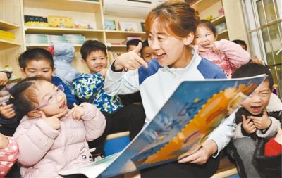 江蘇省南京市建鄴區(qū)一家幼兒園內(nèi),老師為孩子們閱讀繪本故事。方東旭攝(影像中國(guó))